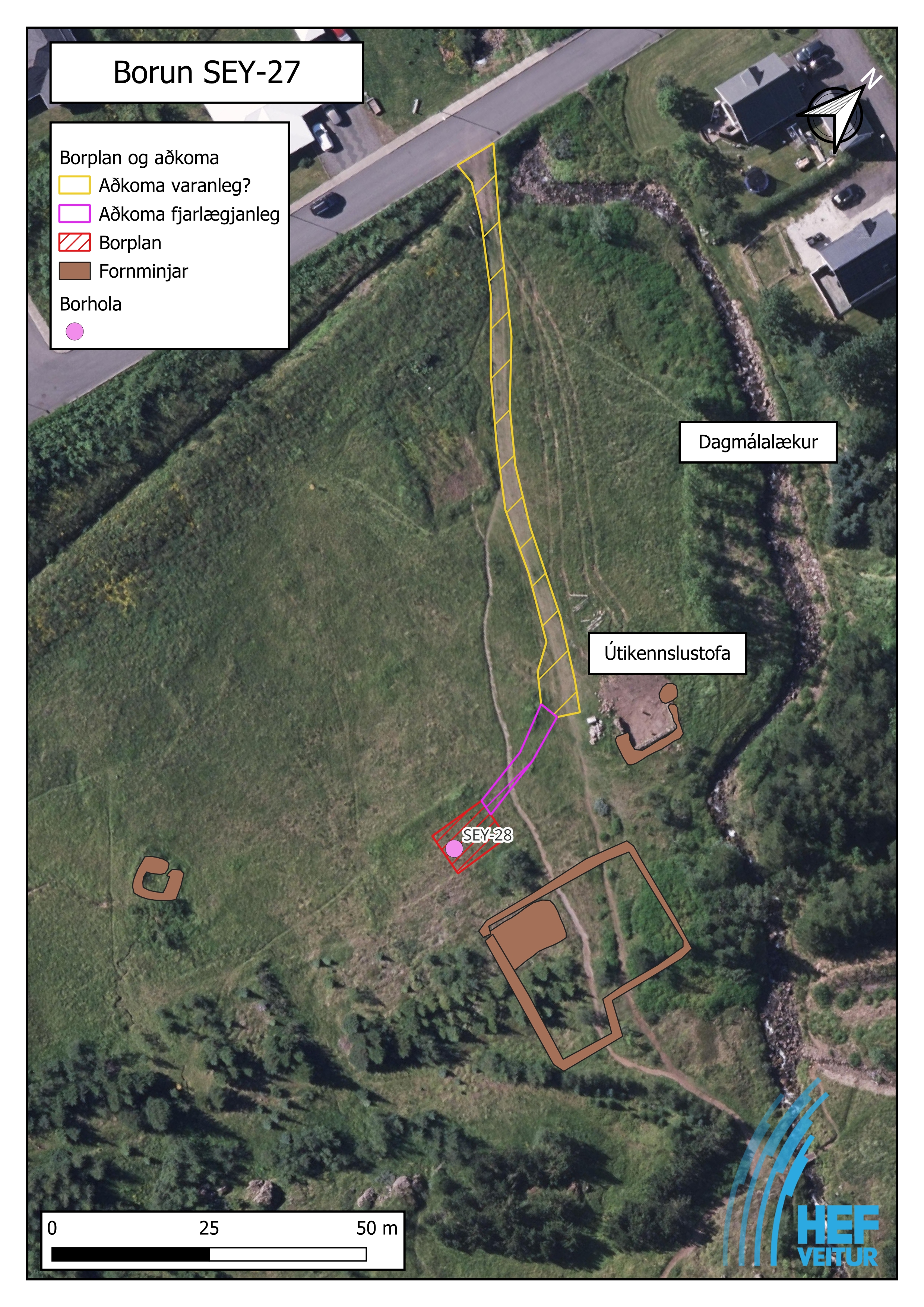Stefnt er á að bora 400 m rannsóknarholu en dýpstu holurnar í firðinum eru 200 m djúpar. Hitastigull í Seyðisfirði er víða í kringum 90-100°C/km og einnig í kringum þéttbýlið. Undirbúningur á svæðinu hefst í vikunni en efni verður borið í slóða og borplan undir bortækin. Borbræður koma svo með borinn sinn Árna þegar undirbúningi er lokið. Borframkvæmdin sjálf myndi taka 2-4 vikur. Framkvæmdinni fylgir tilheyrandi hávaði á svæðinu og nokkur fjöldi vinnuvéla og tækja fylgir framkvæmdinni. Unnið verður að borun milli 8 og 19 virka daga. HAUST hefur verið látið vita af framkvæmdinni. Vonir standa til þess að nýta megi þessa holu til öflunar varma til varmadælu. Hitamælingar og dælupróf verða framkvæmd í holunni að borun lokinni. Í framhaldinu kemur til greina að fá að bora fleiri sambærilegar holur í kaupstaðnum. Ef mælingar gefa til kynna að nýta megi holuna sem varmagjafa fyrir miðlæga varmadælu verður unnið að því að virkja hana með því að leggja lagnir frá henni í kyndistöðina og setja upp dælu og brunn eða lítinn kofa yfir holuna.